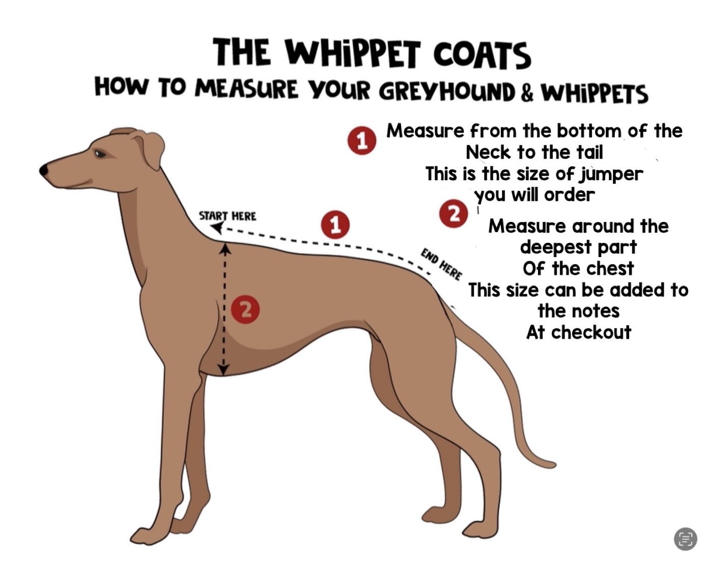 ✅ Back length: Measure from the base of the neck to the base of the tail — this is the size you select from the drop-down box.